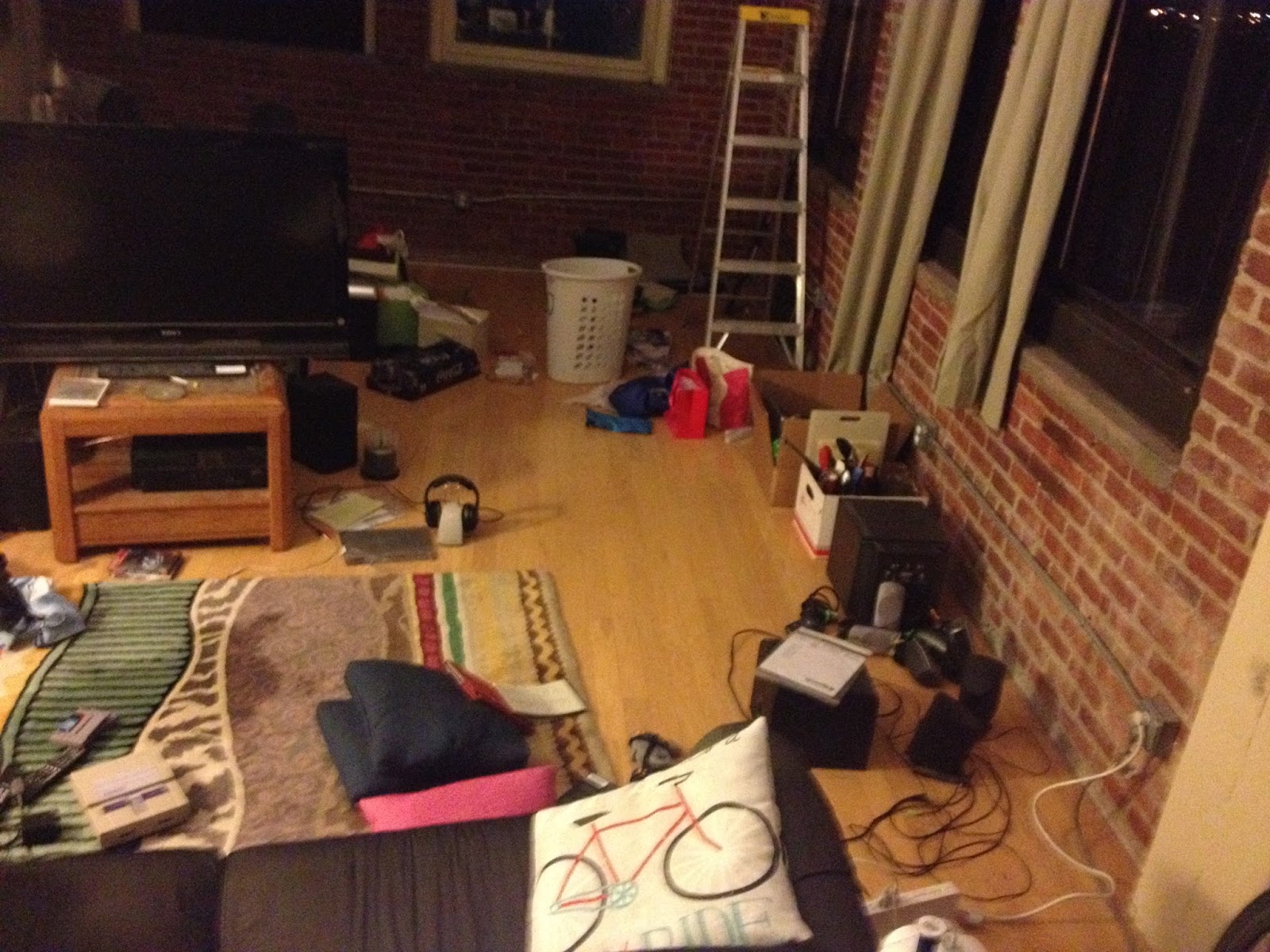 | There used to be a futon along that brick wall. |